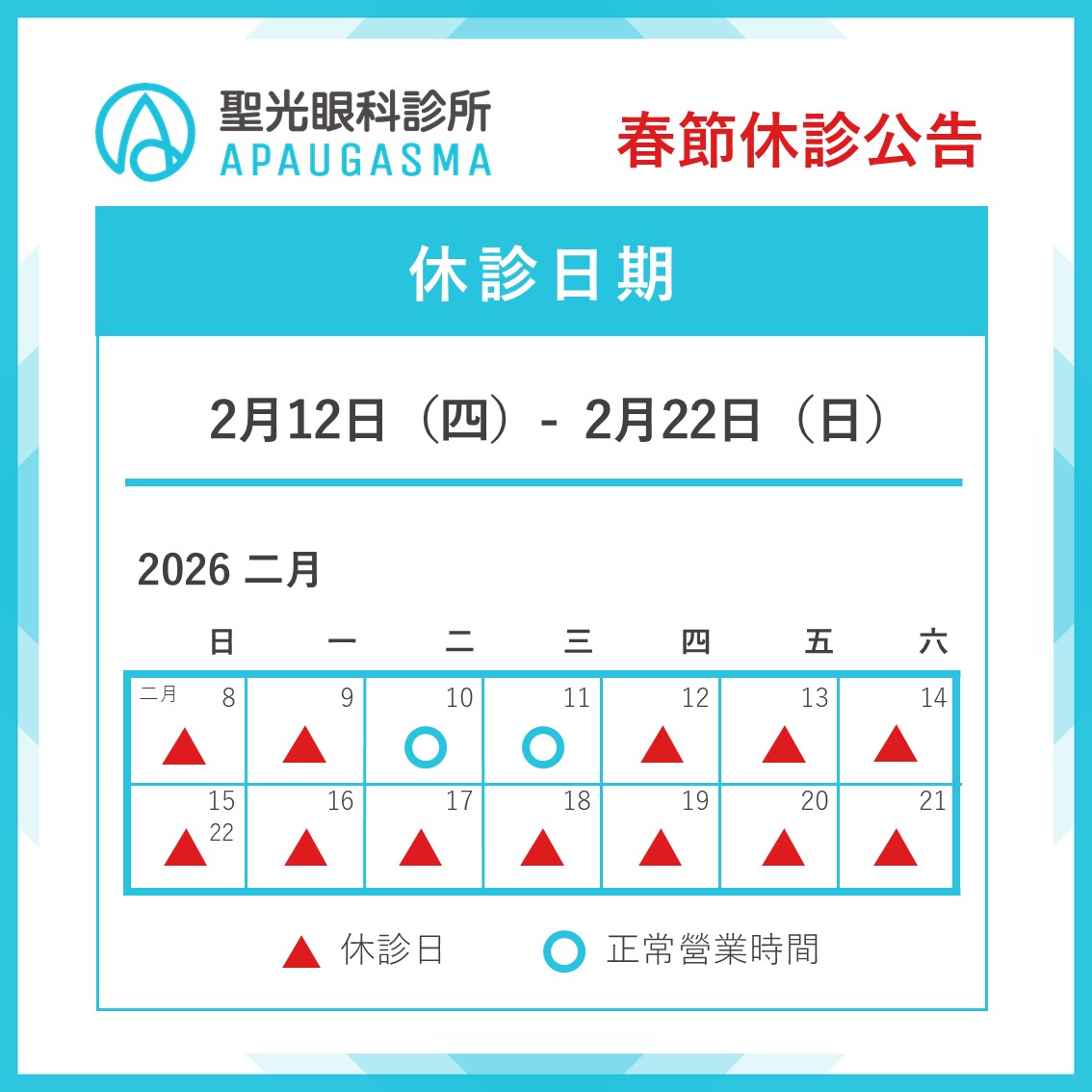 休診期間: 2026 年 2 月 12 日(四)至 2 月 22 日(日)